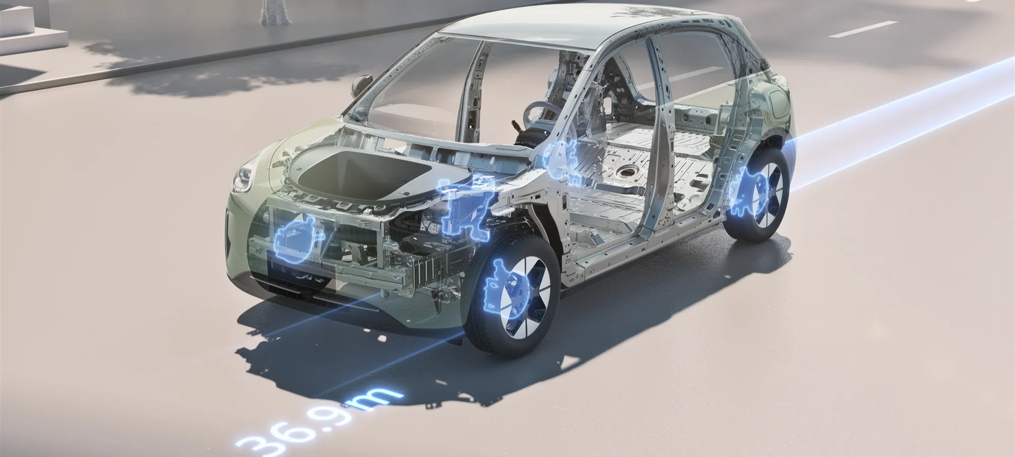 O Geely EX2 é o único do segmento com tração traseira e suspensão independente nas quatro rodas, garantindo equilíbrio dinâmico, estabilidade e conforto em qualquer situação. Com 116 cv de potência, o Geely EX2 entrega aceleração ágil, ótima distribuição de peso e condução prazerosa, unindo performance, segurança e suavidade no dia a dia.