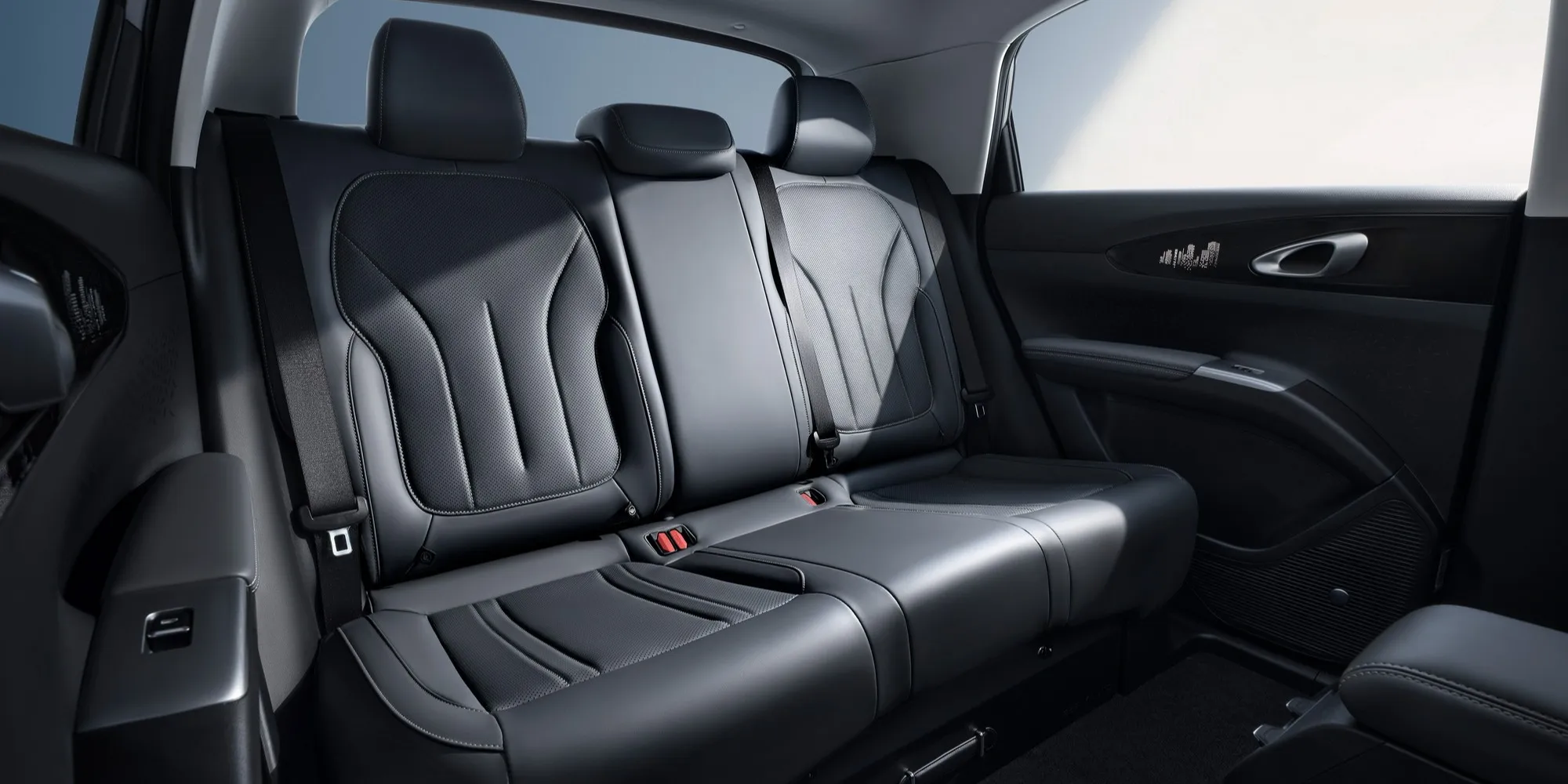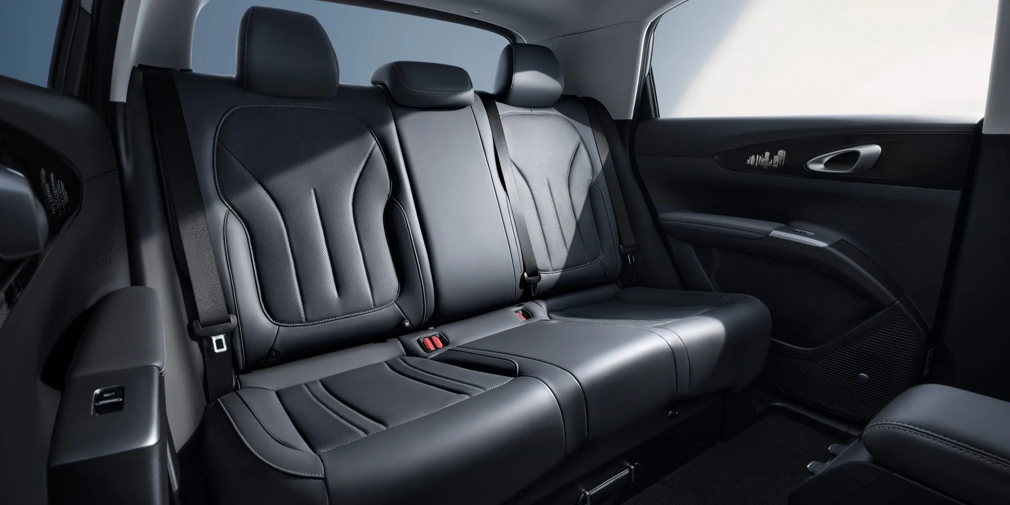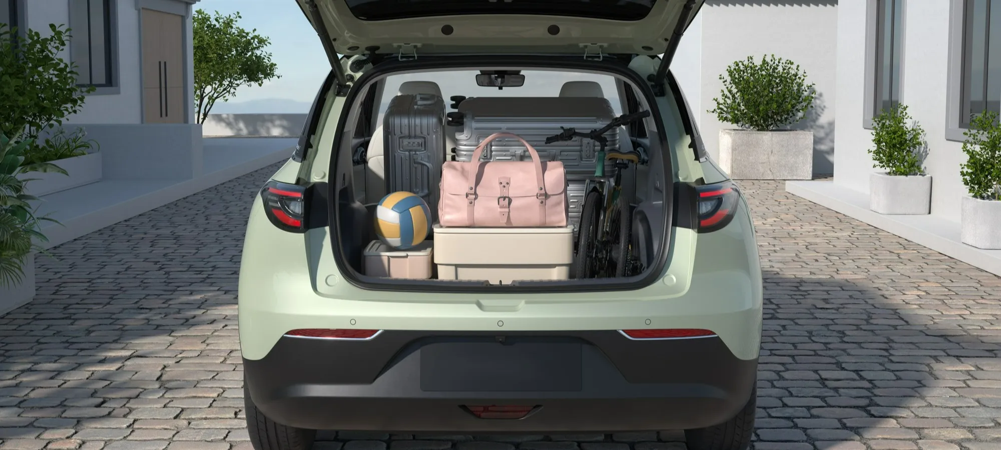 O Geely EX2 oferece conforto para cinco ocupantes e espaço interno surpreendente, graças ao entre-eixos de 2.650 mm. Seu porta-malas de 1.320L com os bancos traseiros rebatidos, garantantindo versatilidade para malas, bicicletas e equipamentos. Conta com um exclusivo fronta-malas de 70L e armazenamento sob o banco traseiro.