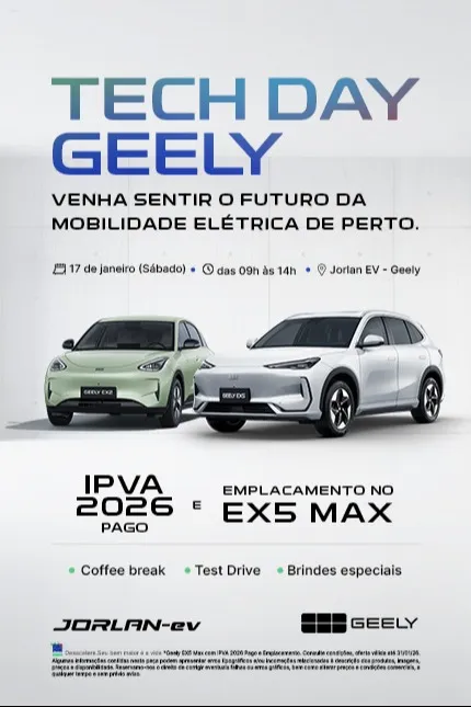 Ter um Geely é mais do que dirigir um carro, é contar com uma experiência completa e sem preocupações. Oferecemos garantia ampla, suporte técnico especializado e assistência 24 horas para que cada jornada seja tranquila, segura e confiável, desde o primeiro quilômetro.
